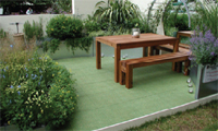 Designed for outdoor use around swimming pools, on balconies and roof gardens, decks, terraces, paths and walkways. Rubber Tiles feel soft, warm and comfortable, even under bare feet. Their high-recycled rubber content makes them an environmentally friendly choice. They are loose-laid with invisible interconnecting joints and provide a selfdraining and safe walking surface that absorbs impact and sound.